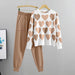 A&S Heart Printed Pearl's Work Style 2-Pcs Winter Tracksuit For Her.