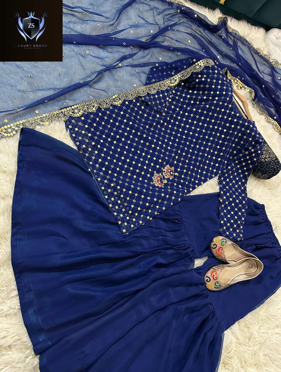 ZS Collection Front and Sleeves 9MM Sequence Embroidered, with Cut Work 9MM Dupatta with Garara 3Piece Size...