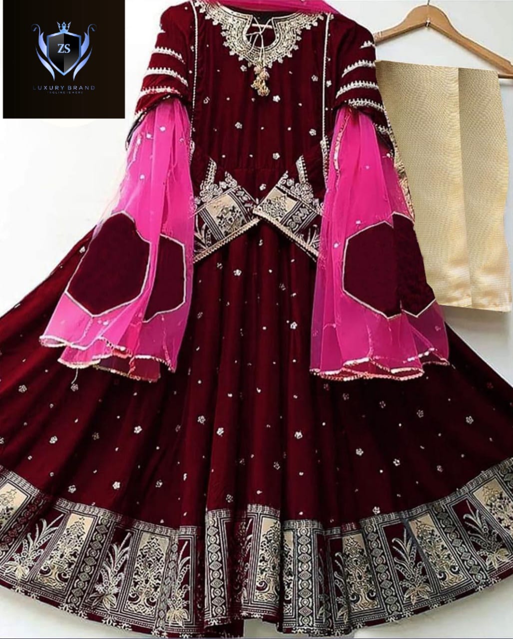 ZS Collection Heavy Embroidered Maxi with Net Dupatta and Mesuri Trouser 3pcs Size Measurements Chest 20Maxi Length 50/...