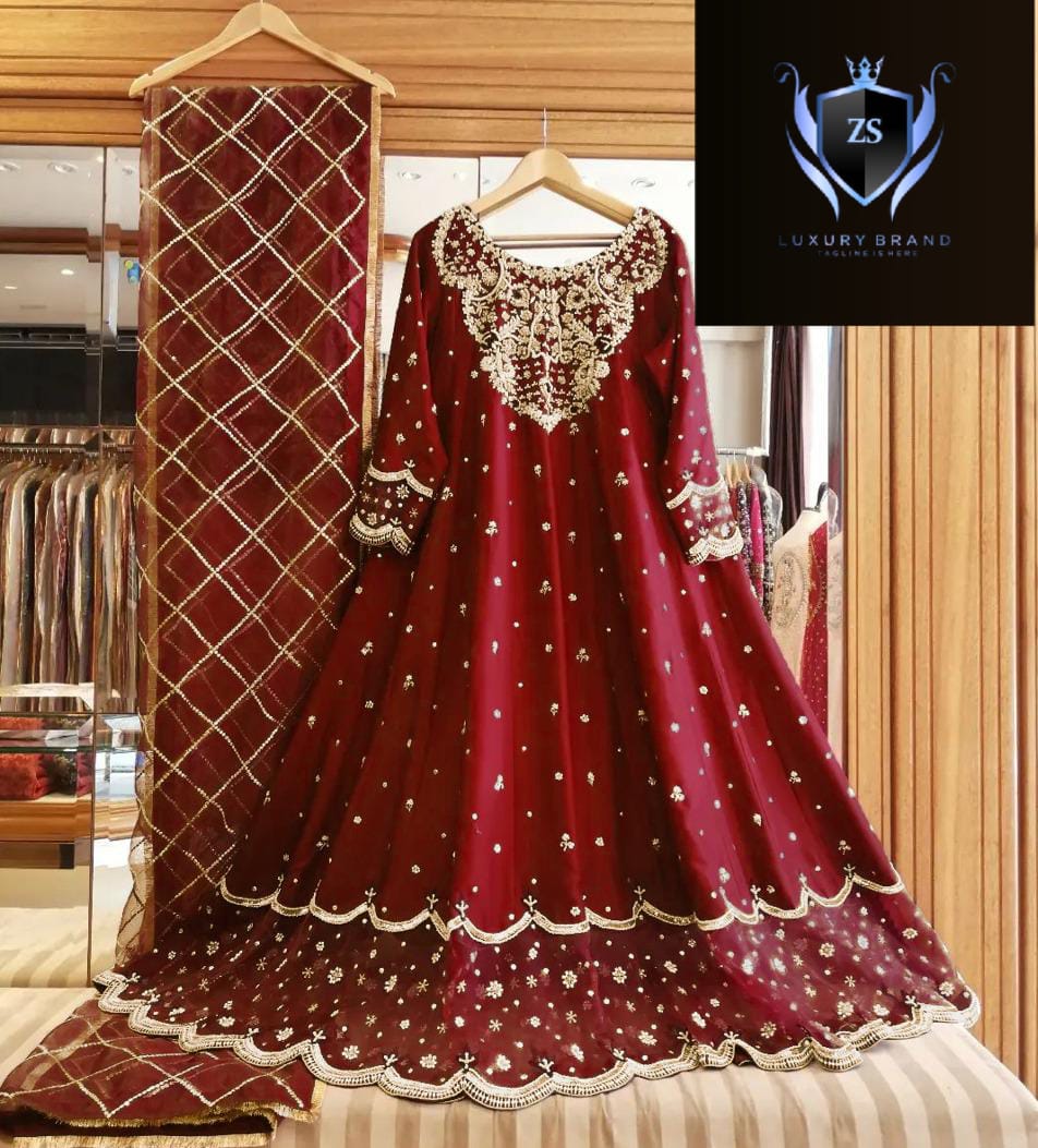 ZS Collection Heavy Neck,Border Embroidery With Handwork Long Maxi With Full Emb Dupatta 3Piece 3 Colours 😍...