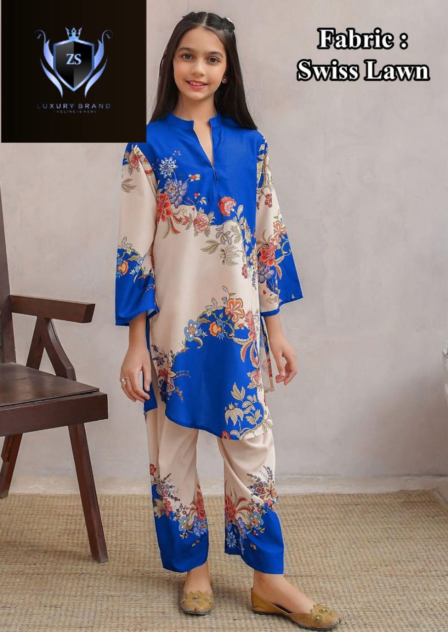 ZS Collection Kids Digital Swiss Printed Lawn ❤️ Front Back All'over Digital Printed Kid's Corset 2Pcs Size...